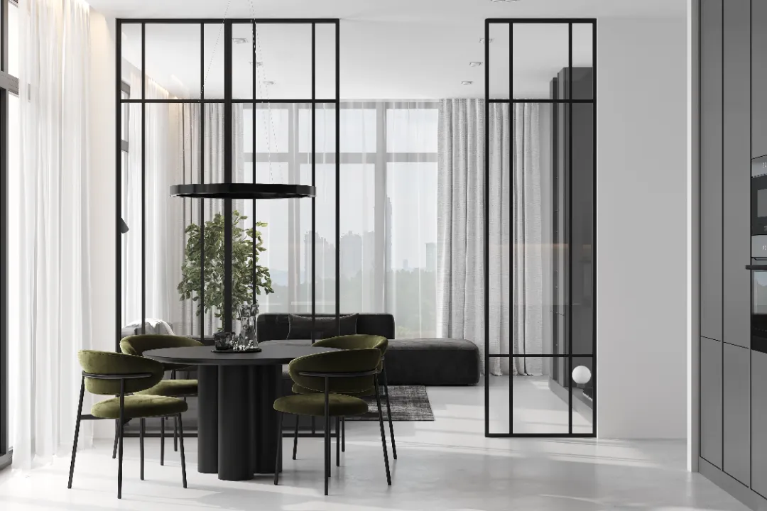Алюминиевые перегородки идеально подходят для зонирования пространства в различных интерьерах, будь то квартиры, студии или офисные помещения.