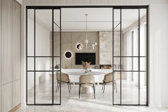 Алюминиевые раздвижные перегородки позволяют легко менять конфигурацию интерьера так, как это необходимо в данный момент, делая ваше пространство более функциональным и многогранным.
